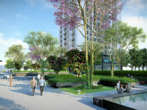 – Tòa DV2, DV3, DV4 – Nhà ở kết hợp dịch vụ: Cao 27 tầng số căn hộ lần lượt là (300 – 250 – 250 căn)